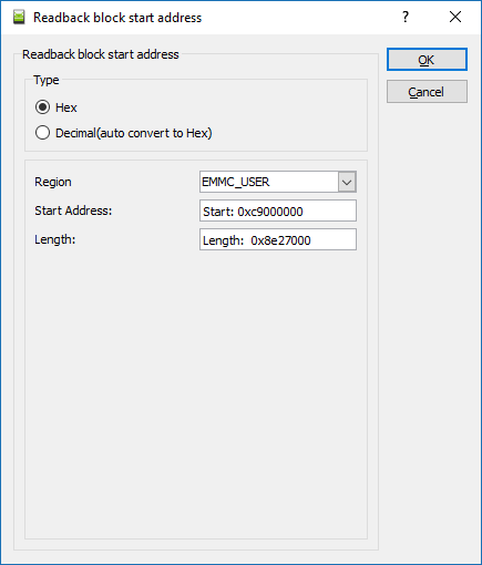 Double-click on the file name and enter the name and location of the resulting image file. In the next screen, change the start address and length to the following values: