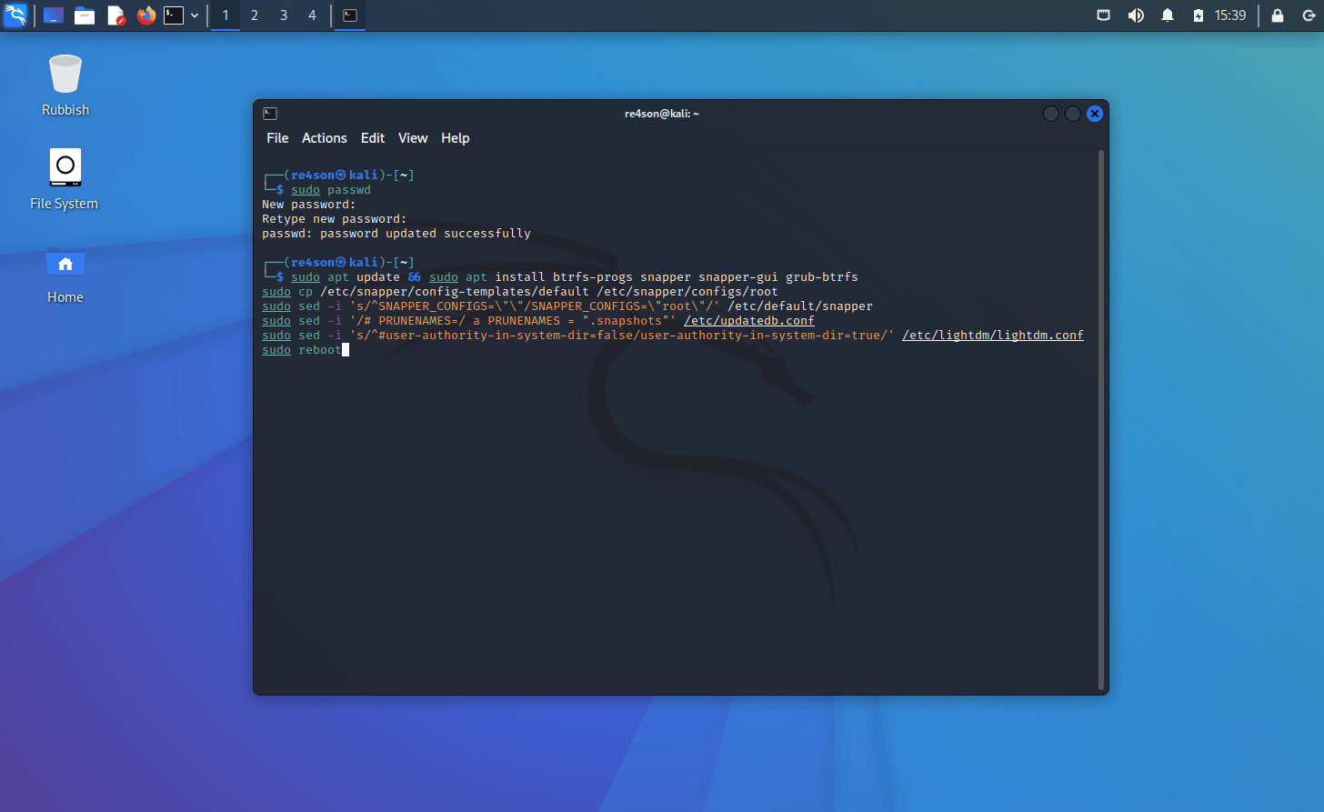 $ sudo apt update && sudo apt install btrfs-progs snapper snapper-gui grub-btrfs