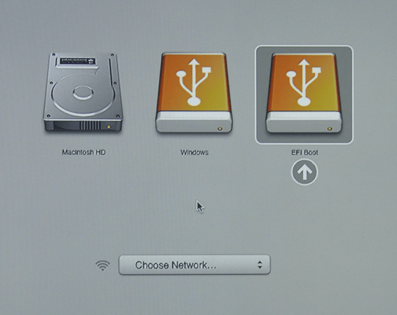 - When the boot menu appears, if everything works as expected, you should see two volumes: