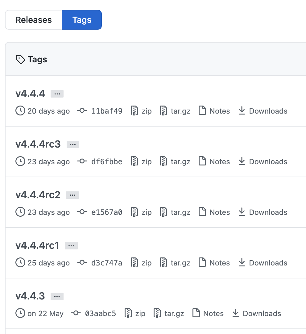 If there isn’t a tag release for the software (or it hasn’t had an release in some time), we can use the latest git commit. This is covered in another guide. However, it is preferred to use a tag release when available.