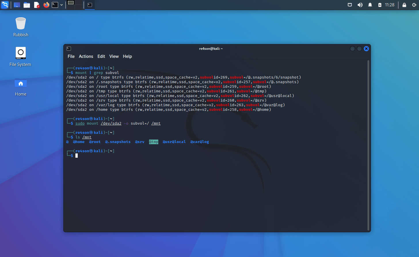 Remember that “/” itself is the subvolume “@”. To rollback to a snapshot, all we have to do is replace “@” with the snapshot we want.