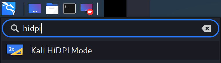 In order to make this process easier, Kali now provides a HiDPI mode. This mode adjusts the scaling-factor for GTK, QT and even Java based interfaces, so that the user doesn’t need to modify each one of them manually. You can toggle it by opening ‘Kali HiDPI mode’ from the applications menu or by running kali-hidpi-mode from the terminal.