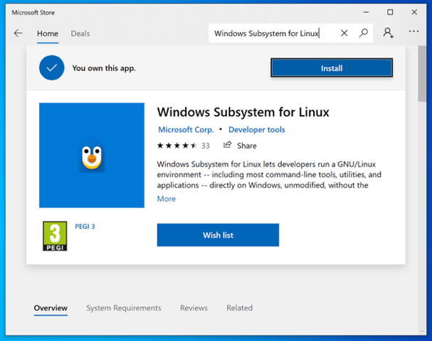 There is a hard requirement to enable WSL via Window’s “Optional Features”. However, you can optionally update WSL by using the Microsoft Store: Windows Subsystem for Linux, to expand its functionality and bug fixes.