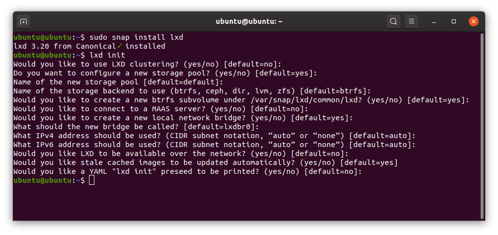1 - Install lxd via snap and perform initial setup (if not already done):