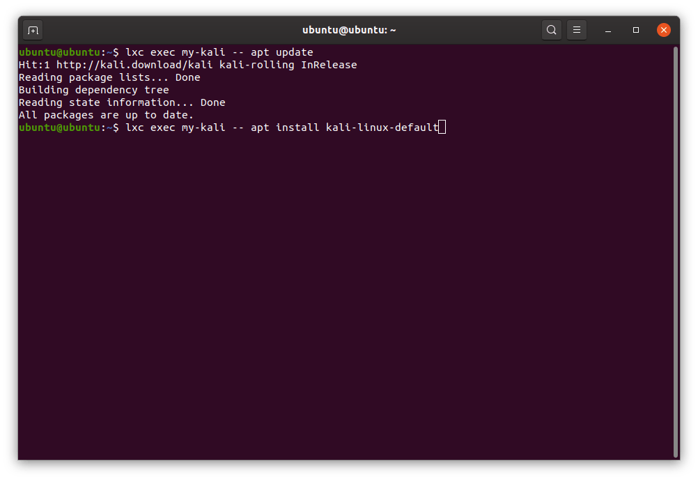 Installing a Kali Linux container in Ubuntu only requires a few steps: