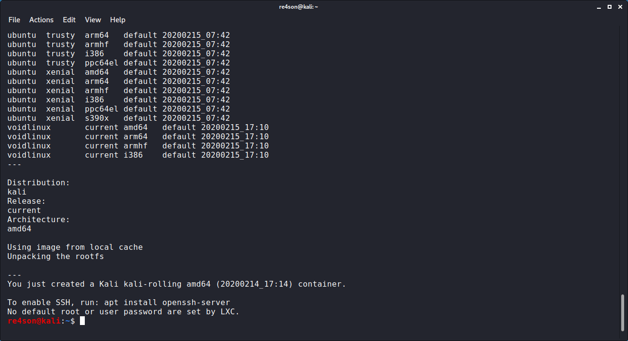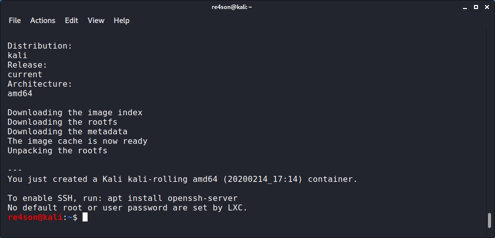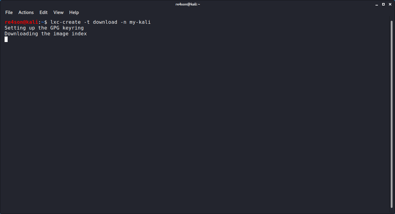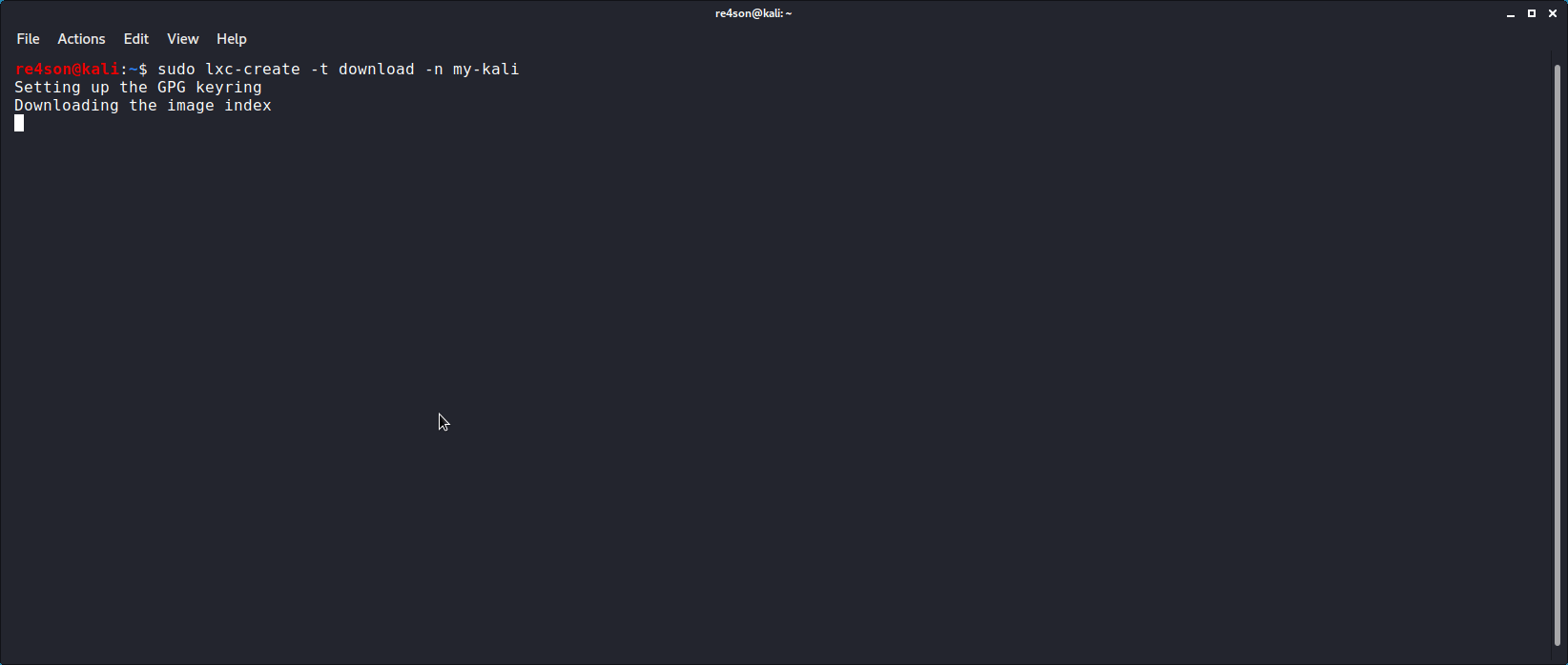 3 - Download the Kali Linux image from the image server viakali@kali:~$ lxc-create -t download -n my-kali