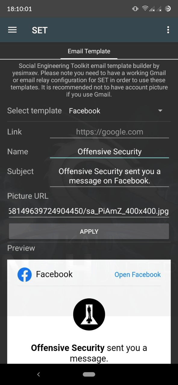 NetHunter Social Engineer Toolkit