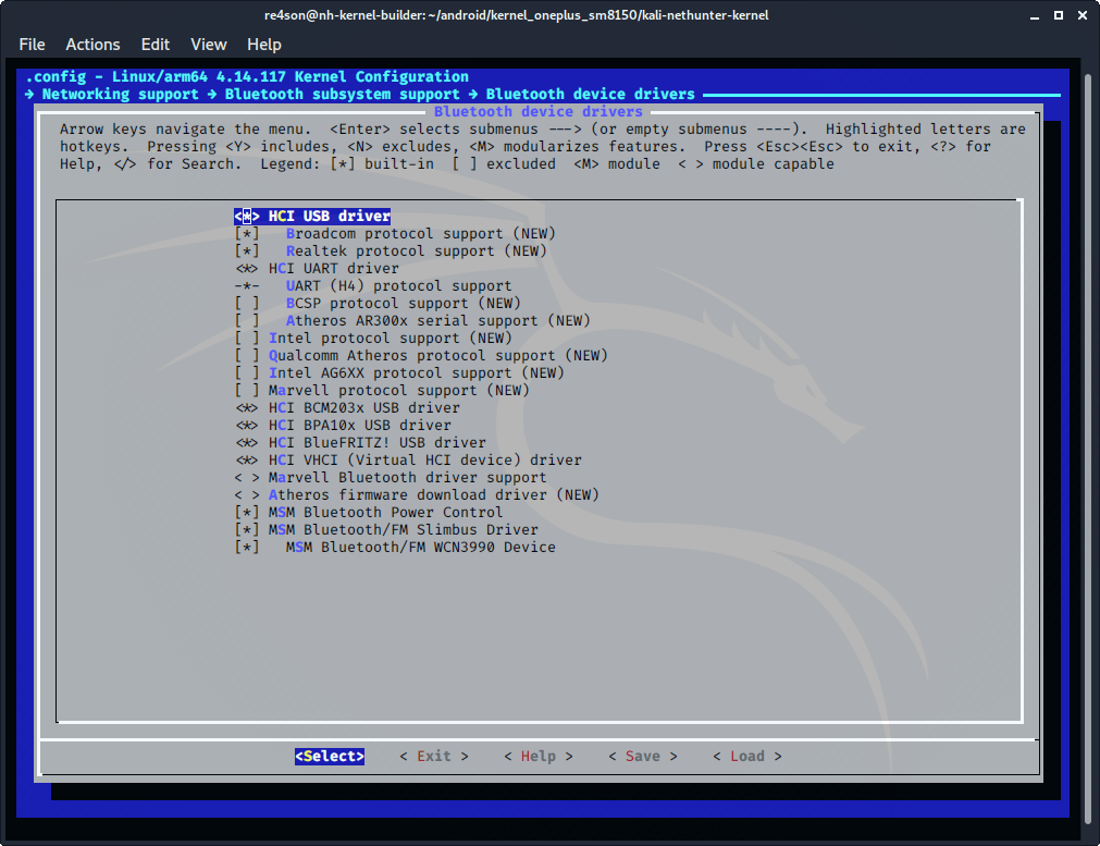 - select “HCI BlueFRITZ! USB driver” CONFIG_BT_HCIBFUSB=y)