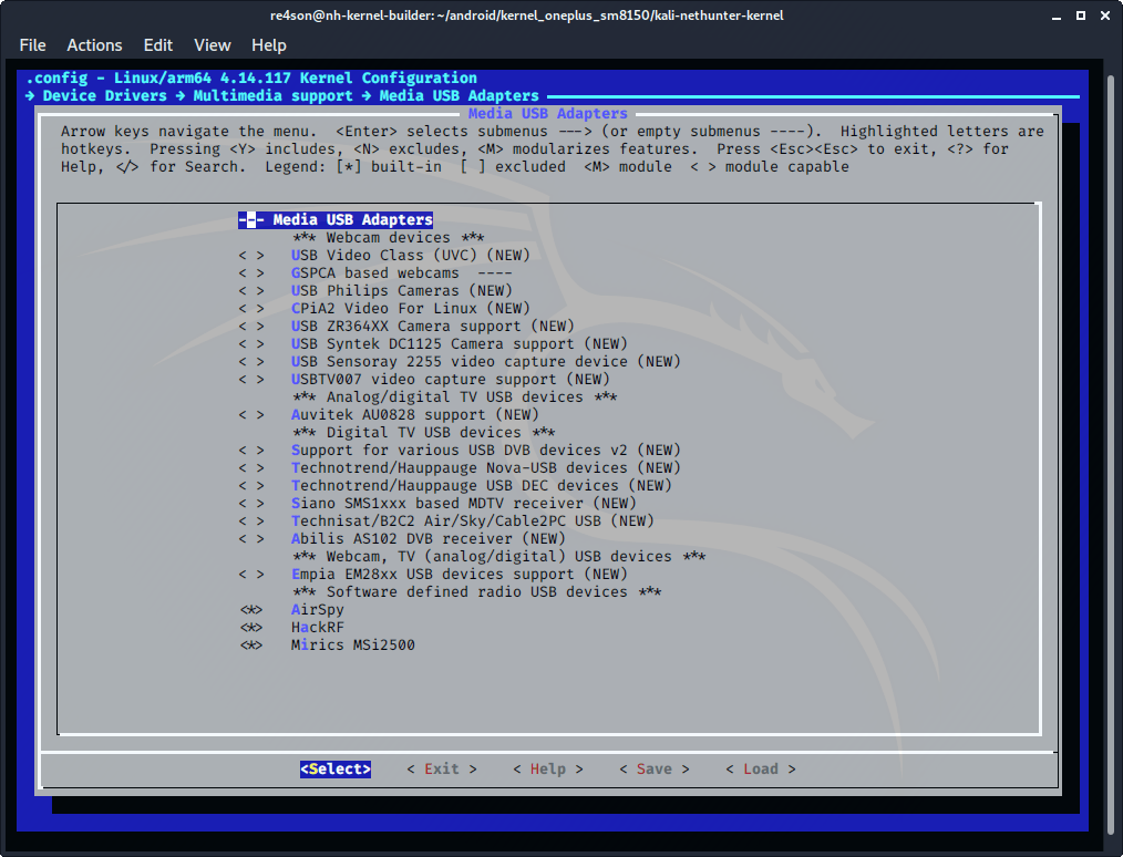 - select “HackRF” (CONFIG_USB_HACKRF=y)