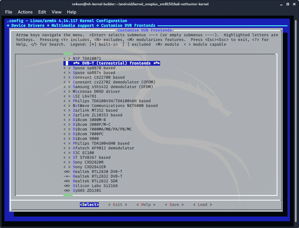 - select “Realtek RTL2830 DVB-T” (CONFIG_DVB_RTL2830=y)