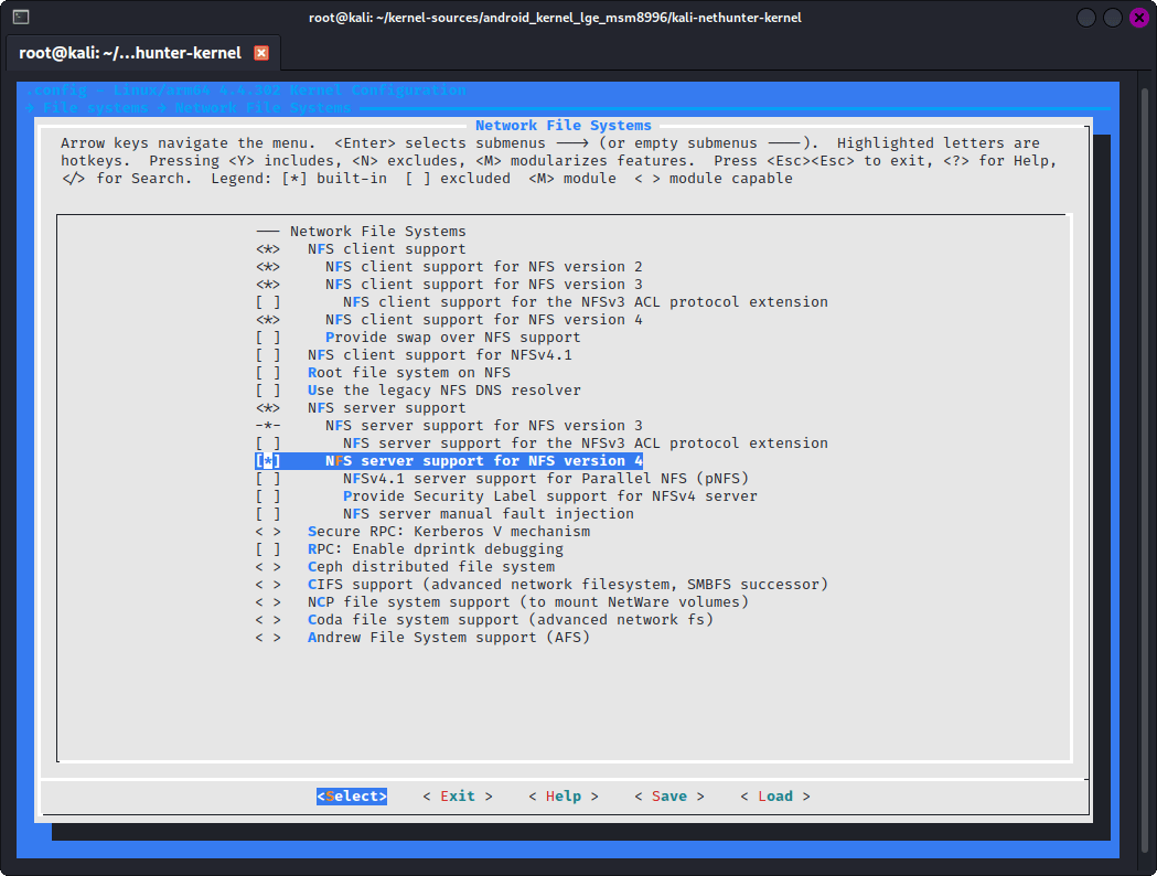 - select “NFS server support for NFS version 4” (CONFIG_NFSD_V4=y)