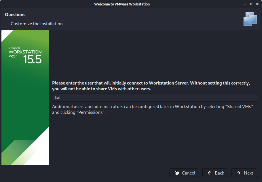 kali@kali:~$ vmware