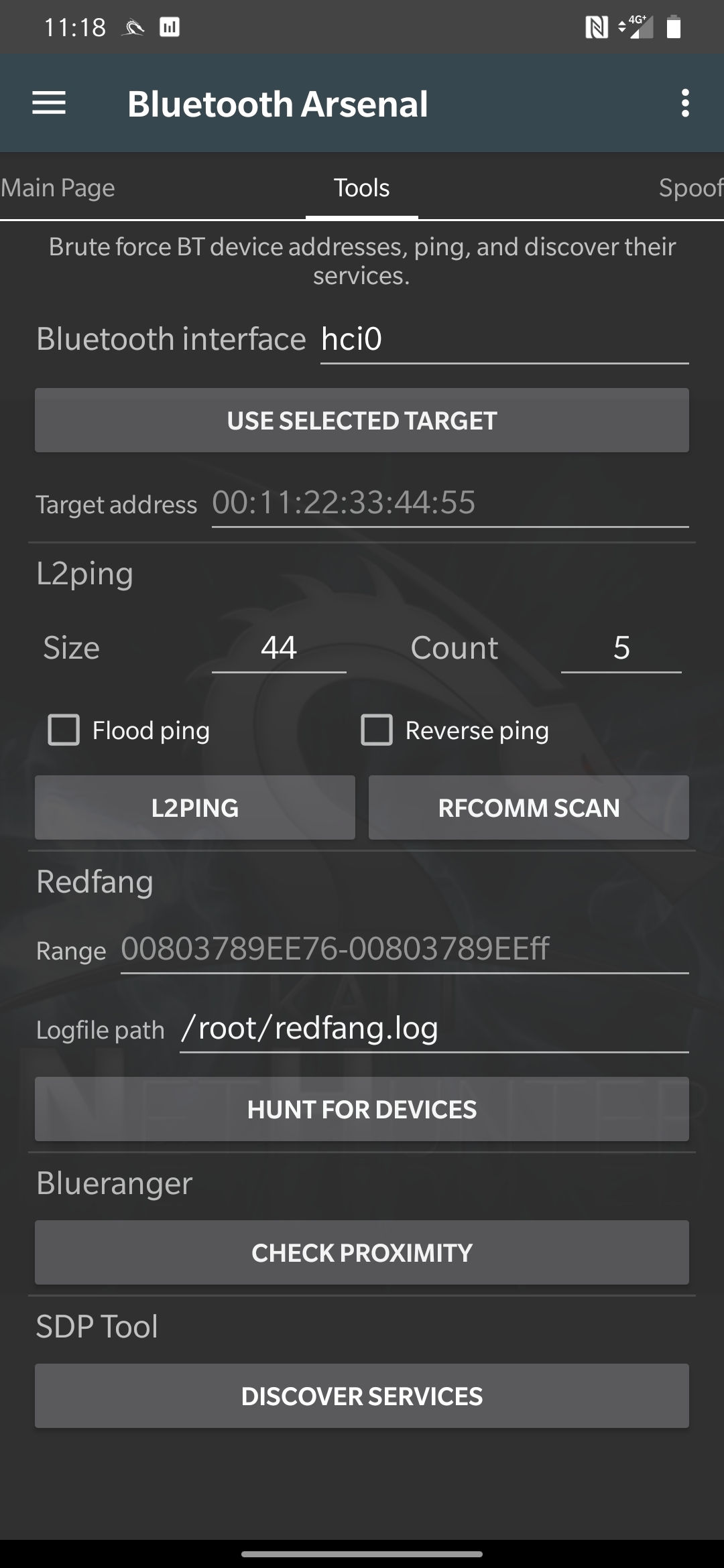 We are proud to introduce Bluetooth Arsenal by @yesimxev from the Kali NetHunter team. It combines a set of bluetooth tools in the Kali NetHunter app with some pre-configured workflows and exciting use cases. You can use your external adapter for reconnaissance, spoofing, listening to and injecting audio into various devices, including speakers, headsets, watches, or even cars.