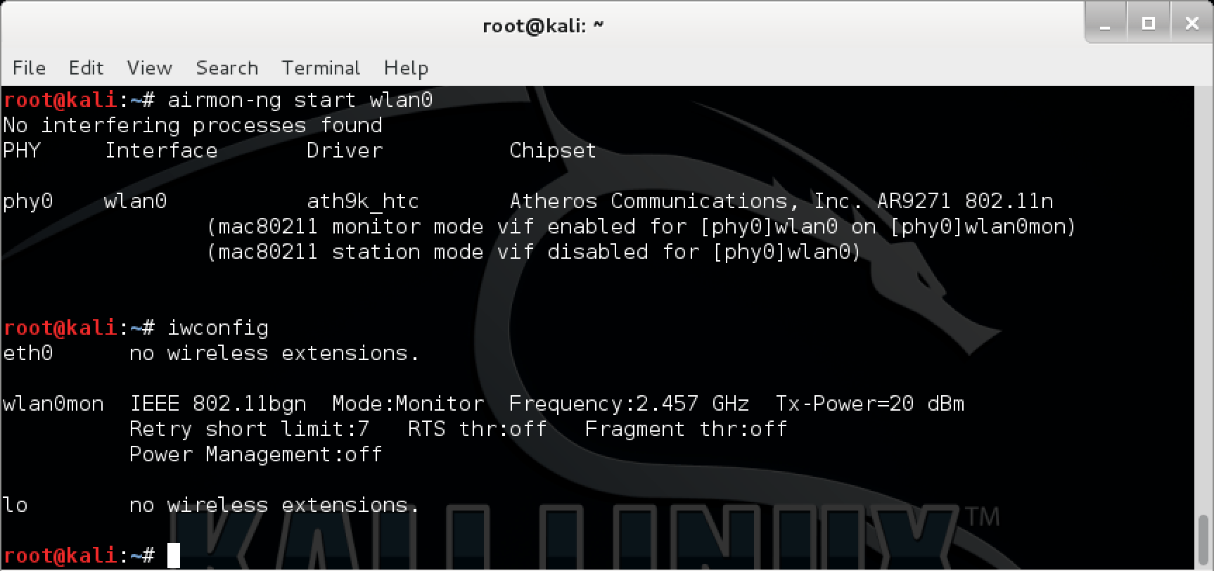 Also notice the new naming convention of the wireless virtual interfaces - wlanXmon, as opposed to monX.