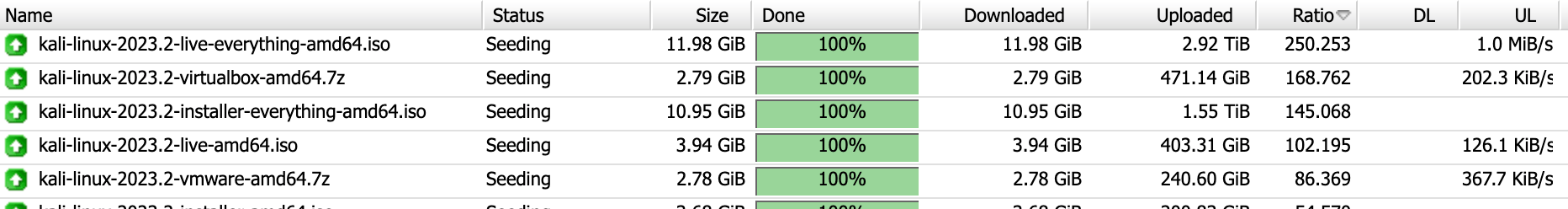 Users can get Kali a variety of ways. We have pre-built VM images, iso files to install it yourself, containers, and cloud instances. When users want to download a new Kali iso, they can do so either through our website using HTTP(S) or through torrent files. To help speed things up, we really appreciate it when people seed our torrents. What this means is that you leave the .torrent file saved and a connection kept, and you help to share the file to other users who are downloading through torrents. This helps to speed the process up for everyone. If you have the bandwidth to share, please consider seeding our torrents.